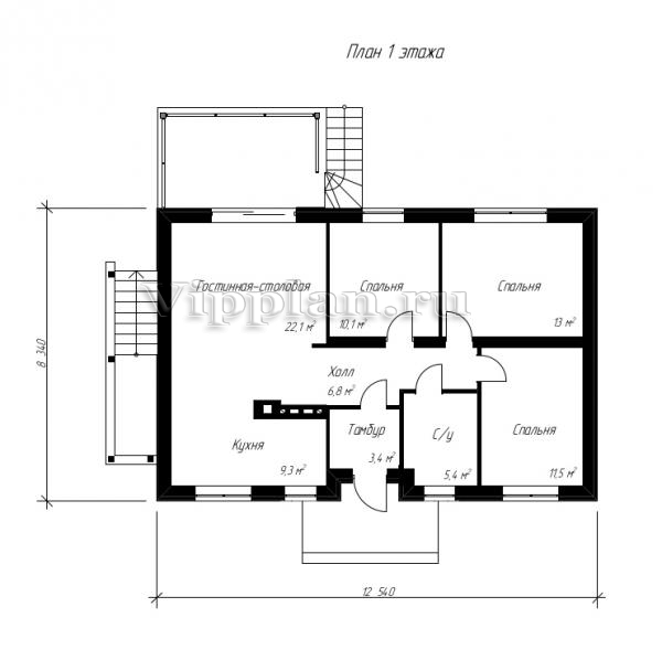 | Размеры дома: | 8.34м×12.54м |