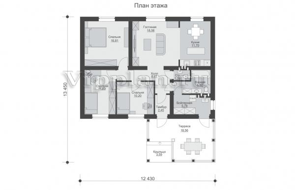 | Размеры дома: | 13.45м×12.43м |